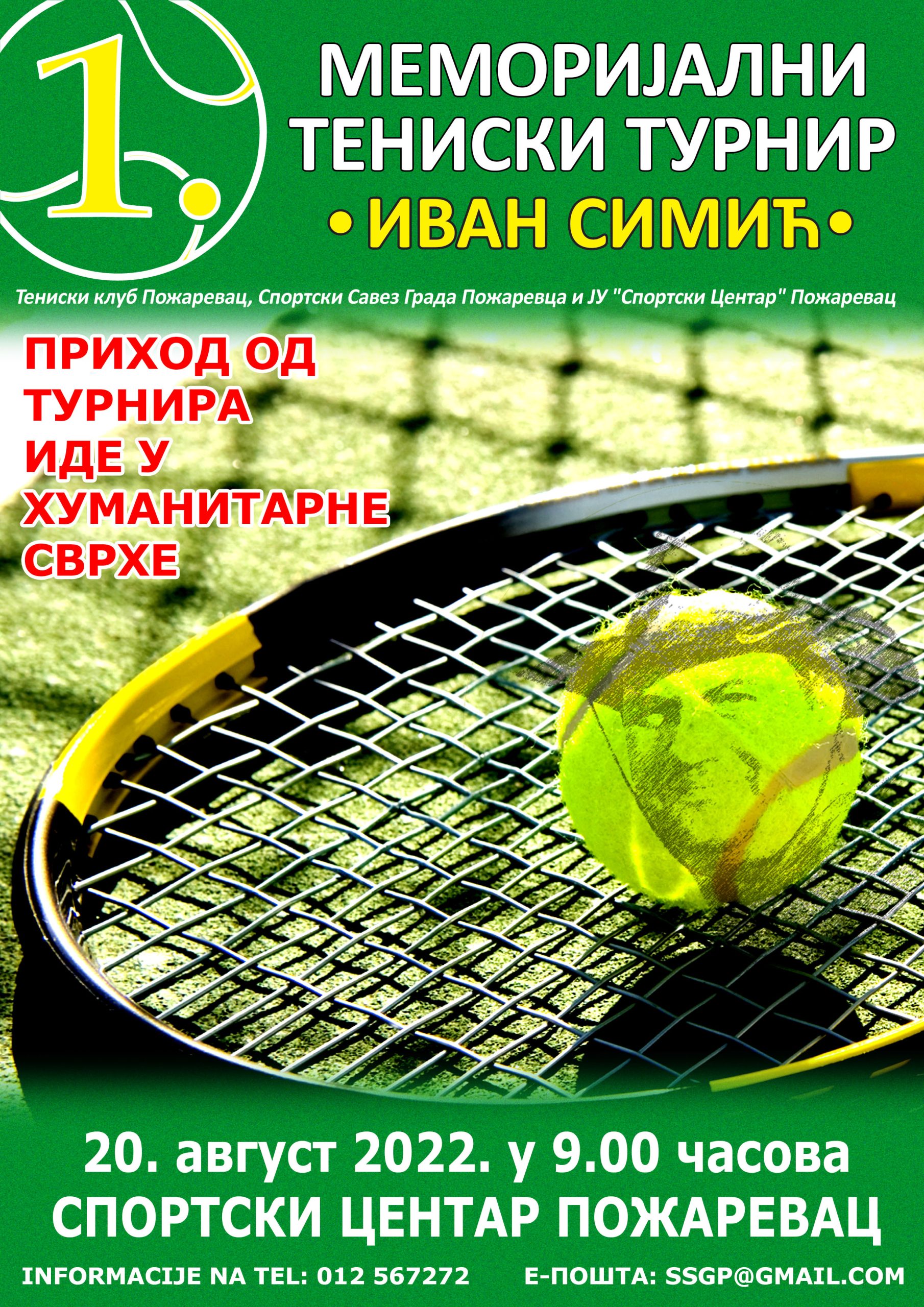 У суботу, 20. августа, на тениским теренима Спортског центра Пожаревац, играће се први Меморијални тениски турнир „Иван Симић“.