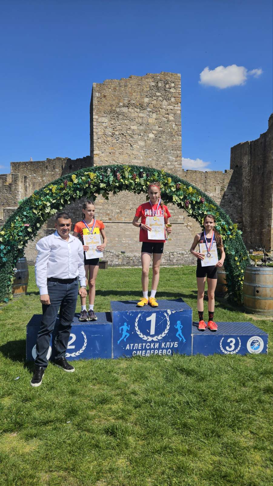 У конкуренцији такмичарки из атлетских клубова из Смедерева, Новог Пазара, Петровца на Млави, Пожаревца, као и једне представнице из Румуније, Тара је доминирала стазом и тактички изузетно зрелом трком прва прошла кроз циљ, са значајном предношћу у односу на другопласирану такмичарку, Анђелу Матић из Атлетског клуба „Муње 012“ и трећепласирану Марију Максић, из Атлетског клуба „Пожаревац“.