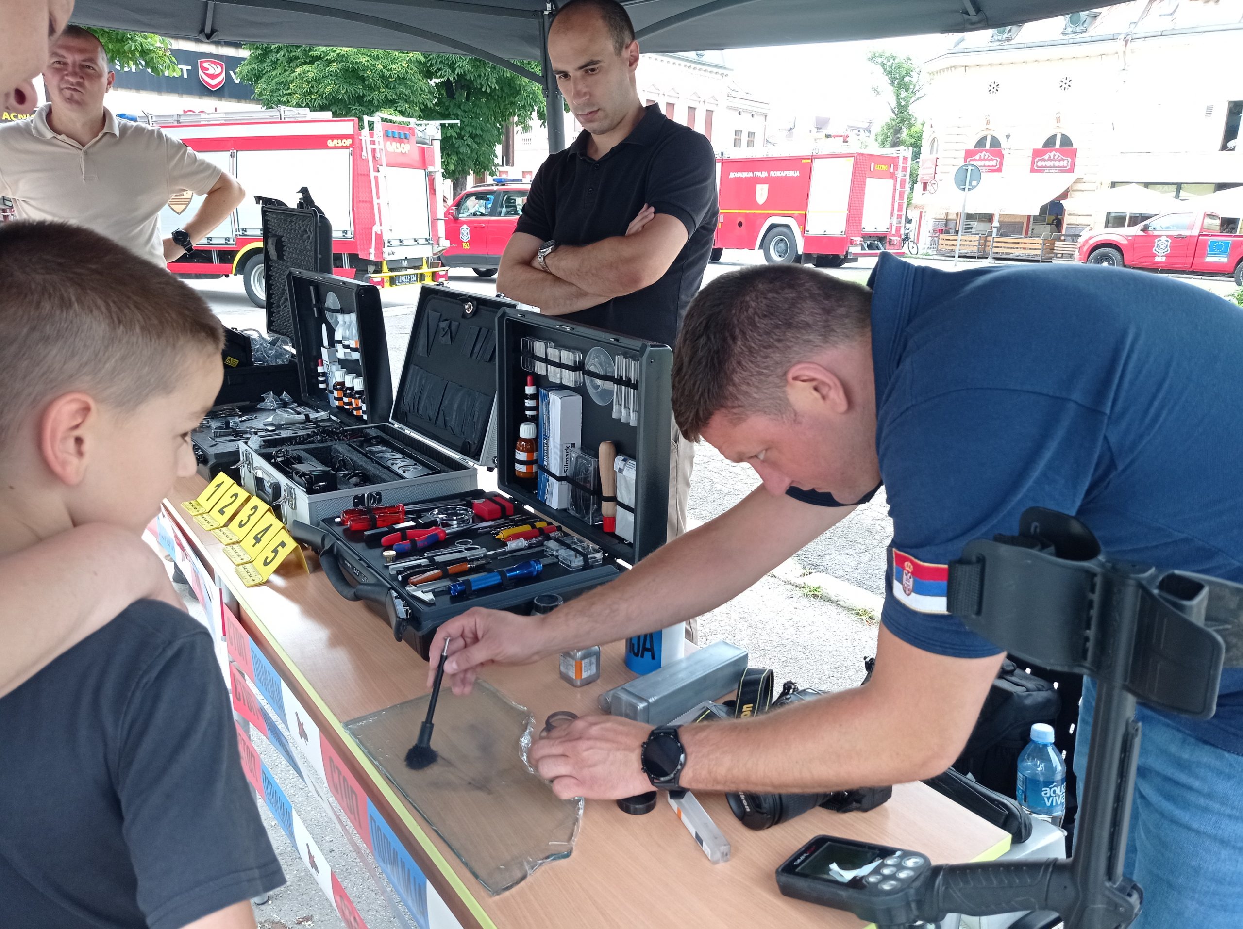 Најзанимљивије је било малишанима који су имали прилику да седну у ватрогасна и полицијска возила, али и испробају узимање отисака и касније се забављају  у пени.
