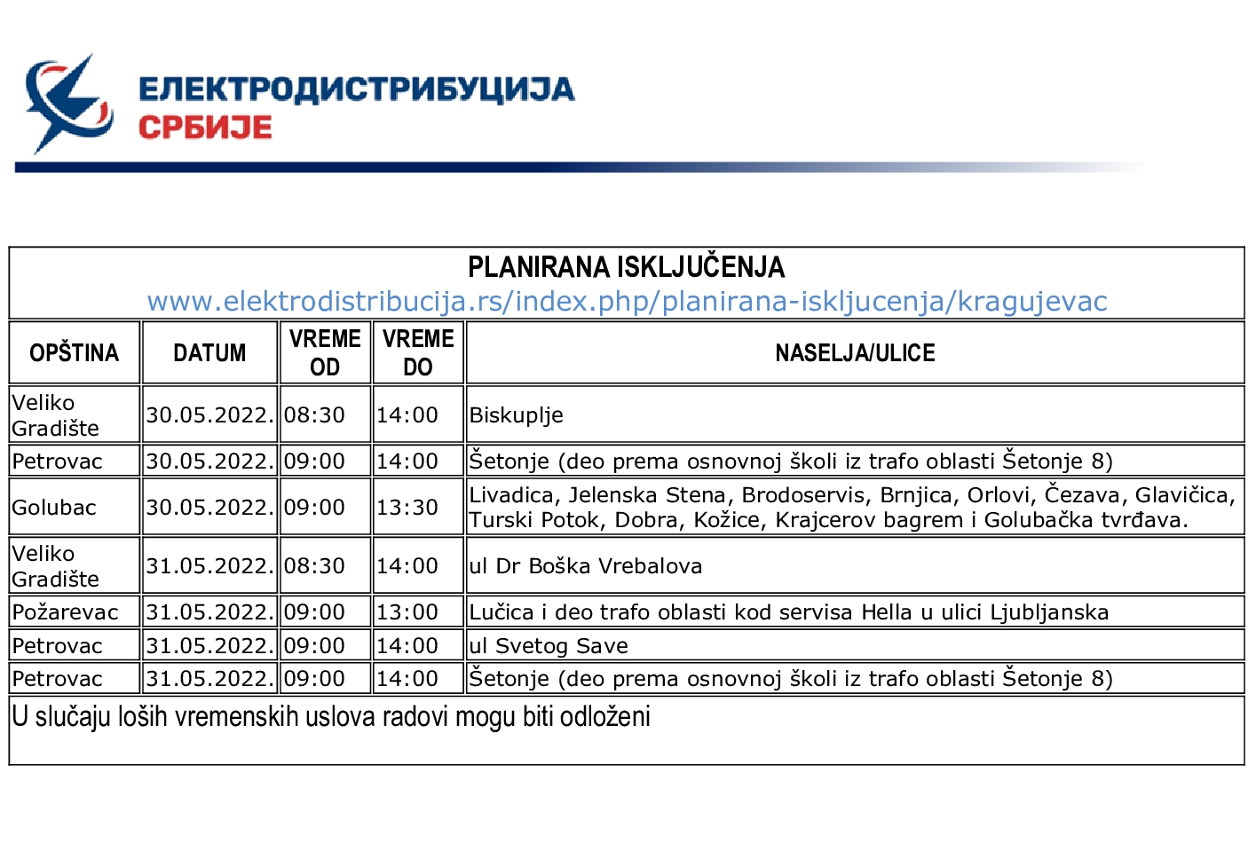 Из Електродистрибуције Србије преносимо план искључења електричне енергије за наредне дане.