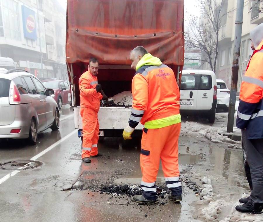 Након спроведених активности на чишћењу снега и третирања коловоза сољу, чиме су саобраћајнице очишћене од снега и леда, створени су услови за санацију оштећења коловоза.