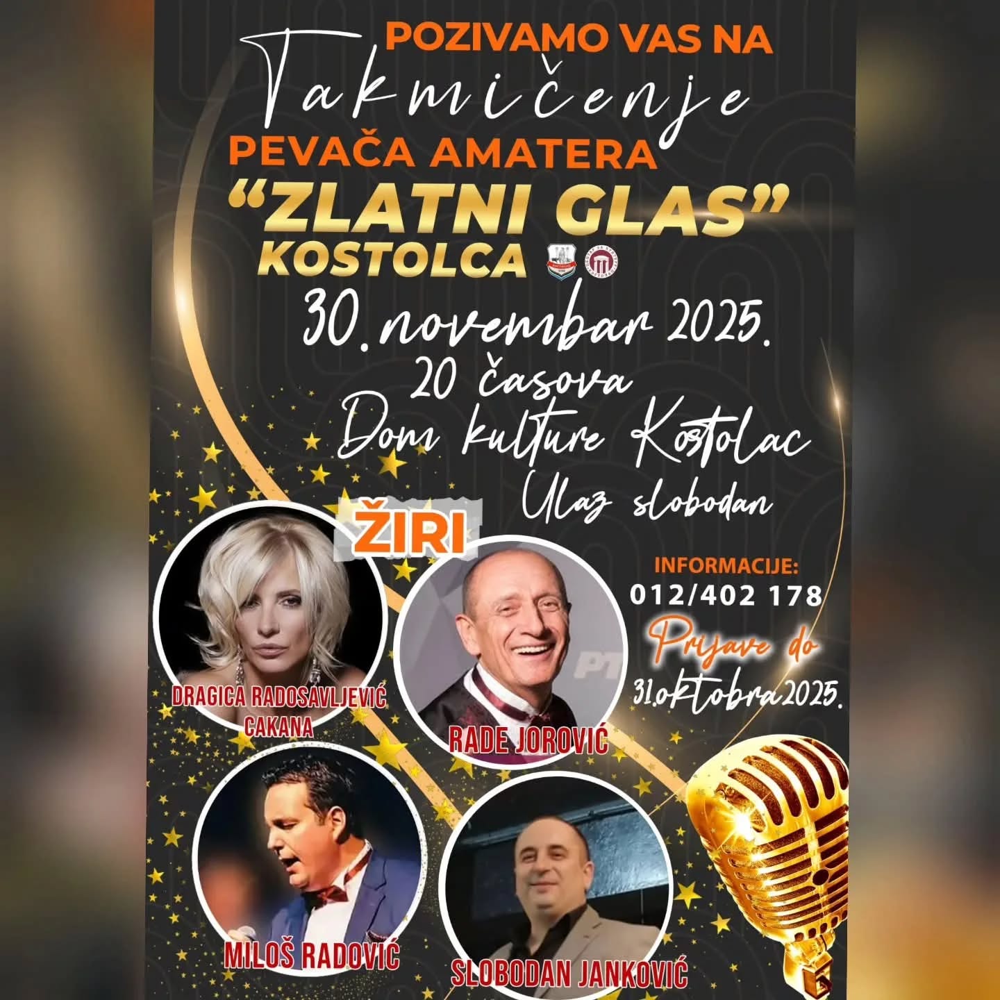 Центар за културу Костолац позива на такмичење певача аматера „Златни глас Костолца“, месту где се рађају нови музички таленти.