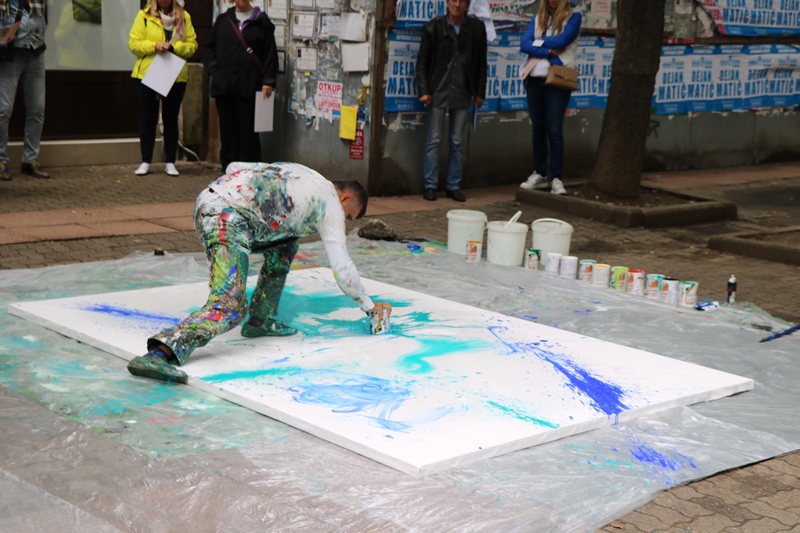 Турски уметник Орхан Чебраилоглу, учесник Међународне ликовне колоније коју реализује Удружење ликовних стваралаца „Ђура Јакшић“ уз подршку Града Пожаревца, приредио је необичан уметнички перформанс испред Галерије савремене уметности.
