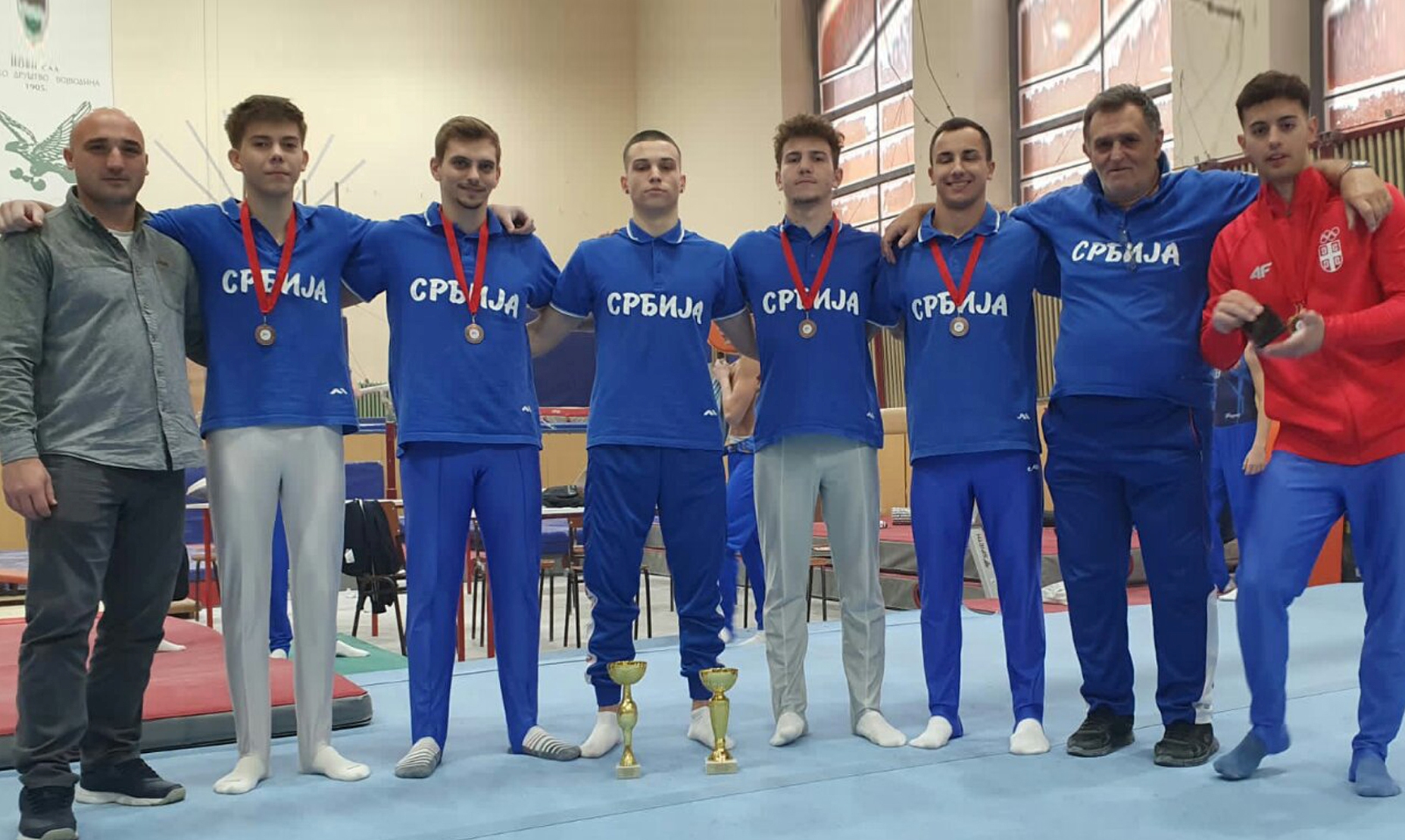 У гимнастичком вишебоју најбољи појединац и Апсолутни првак Србије је Петар Вефић са 75,700 освојених бодова док је Урош Петровић такође вишебојац освојио 11 несто са 46,300 освојених бодова. Због повреда вишебој нису вежбали Срећко и Лука.