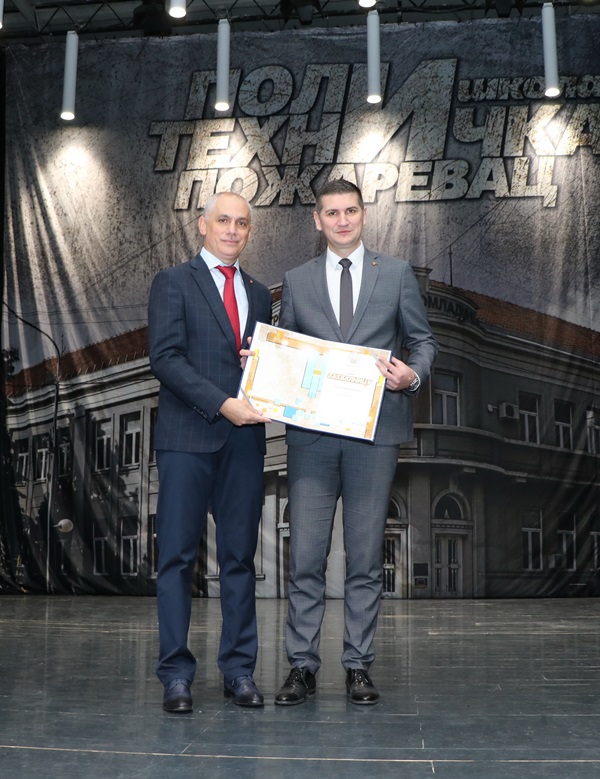Захвалнице за значајан допринос развоју Политехничке школе, директор Дарко Радовановић доделио је Граду Пожаревцу, градоначелнику Саши Павловићу и Школској управи Пожаревац.