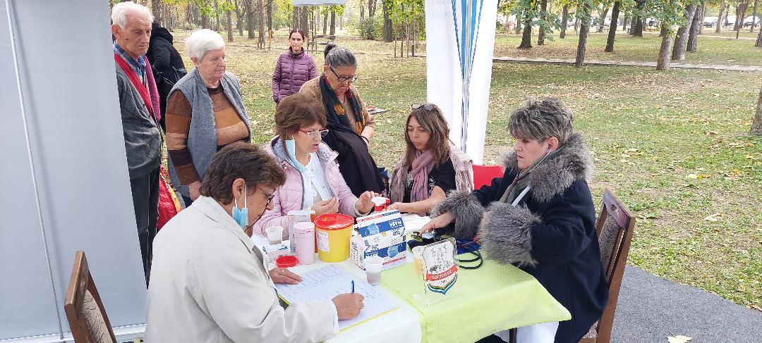 Традиционална бесплатна акција мерења притиска и шећера у крви, уз давање савета лекара, и ове године је у оквиру обележавања Међународног дана старих организована у Костолцу, у Градском парку.