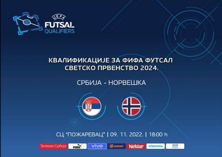 У Спортском центру у Пожаревцу, у среду, 9. новембра, са почетком од 18 часова, одиграће се утакмица у футсалу између Србије и Норвешке. Истовремено ово су квалификације за ФИФА футсал Светско првенство 2024. године.