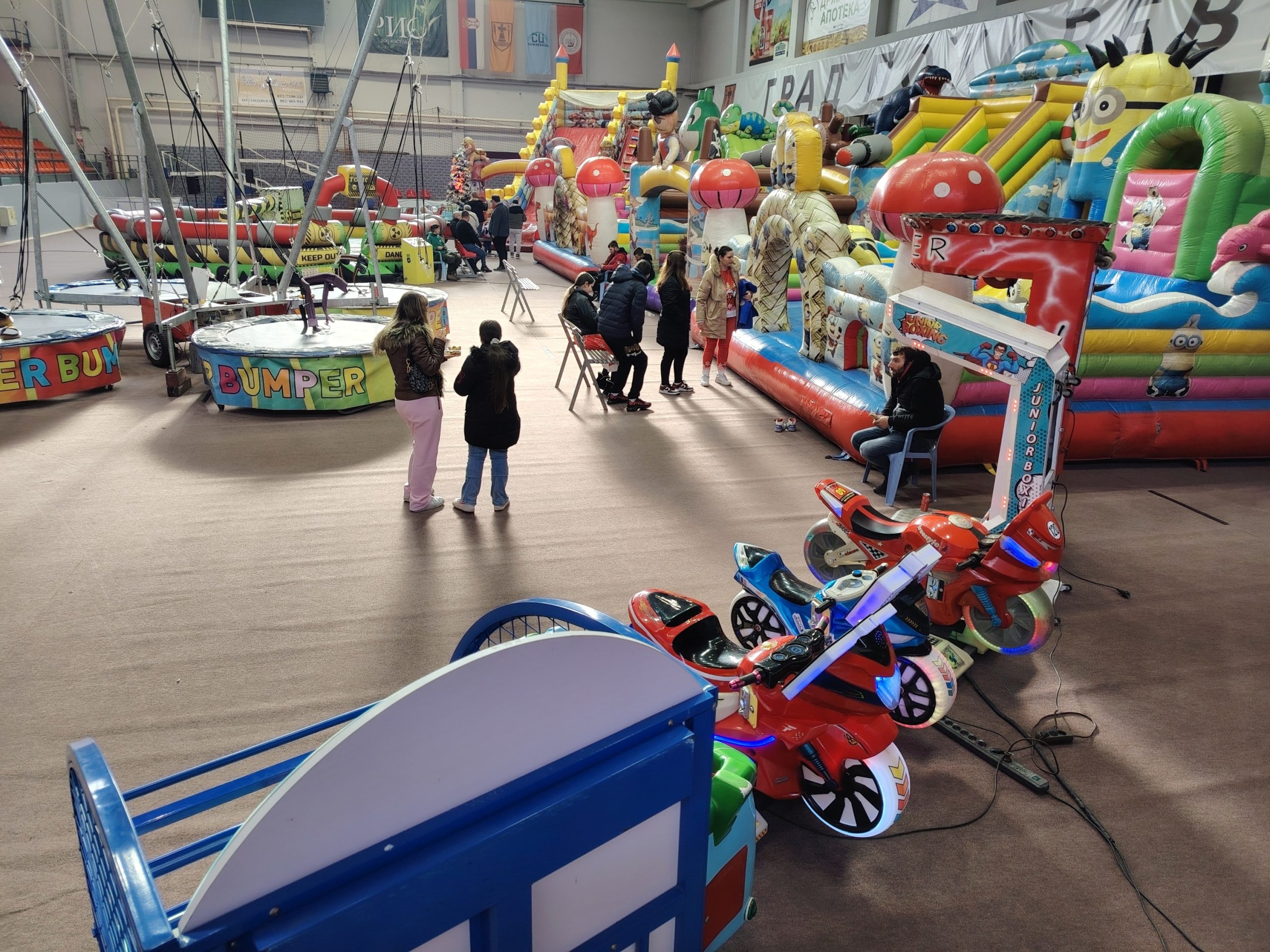 Још раније, испред Хале спортова почели су са радом аутодром и клизалиште, а сада су справе за дечју забаву постављене и унутар велике сале.