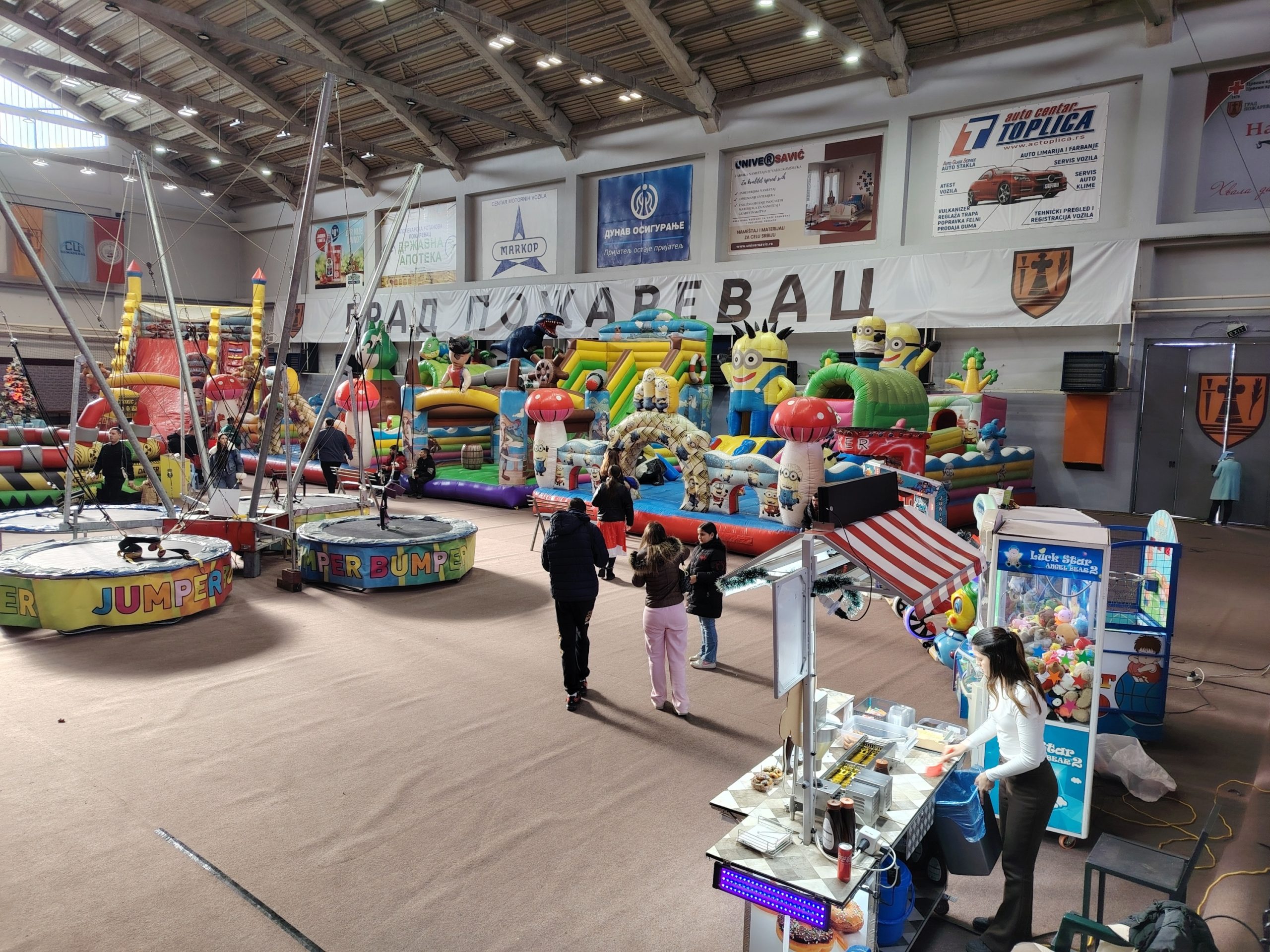Још раније, испред Хале спортова почели су са радом аутодром и клизалиште, а сада су справе за дечју забаву постављене и унутар велике сале.