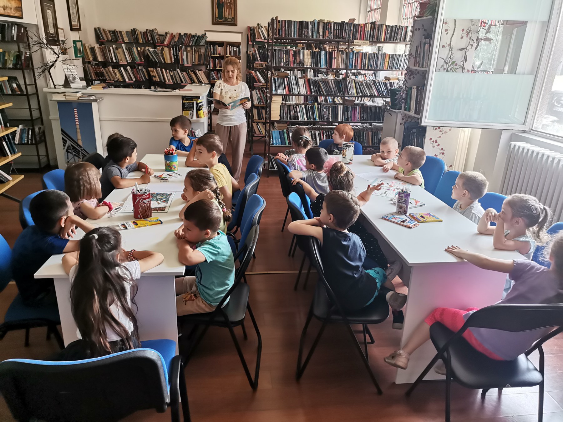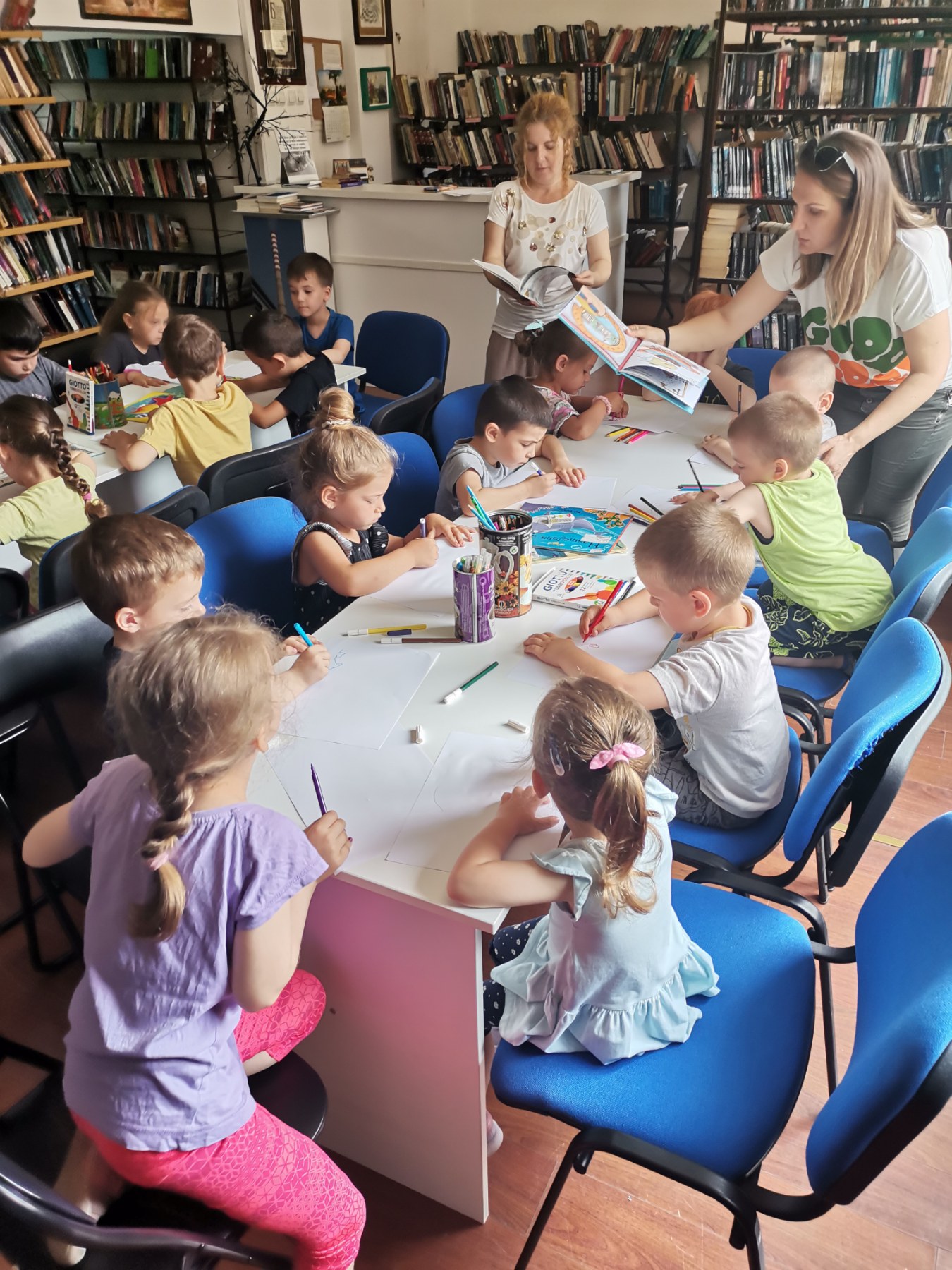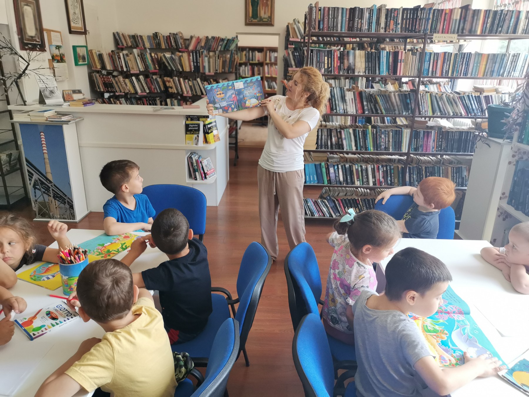 Радионицу је водила Рената Минић, дипломирани библиотекар саветник, која је деци читала сликовнице из те тематике, разговарала са њима о рибама и подводном свету. Деца су поделила и своја сазнања и искуства са њима. Практични део радионице подразумевао је да деца након разговора нацртају на папир оно што су на радионици сазнали о рибама.