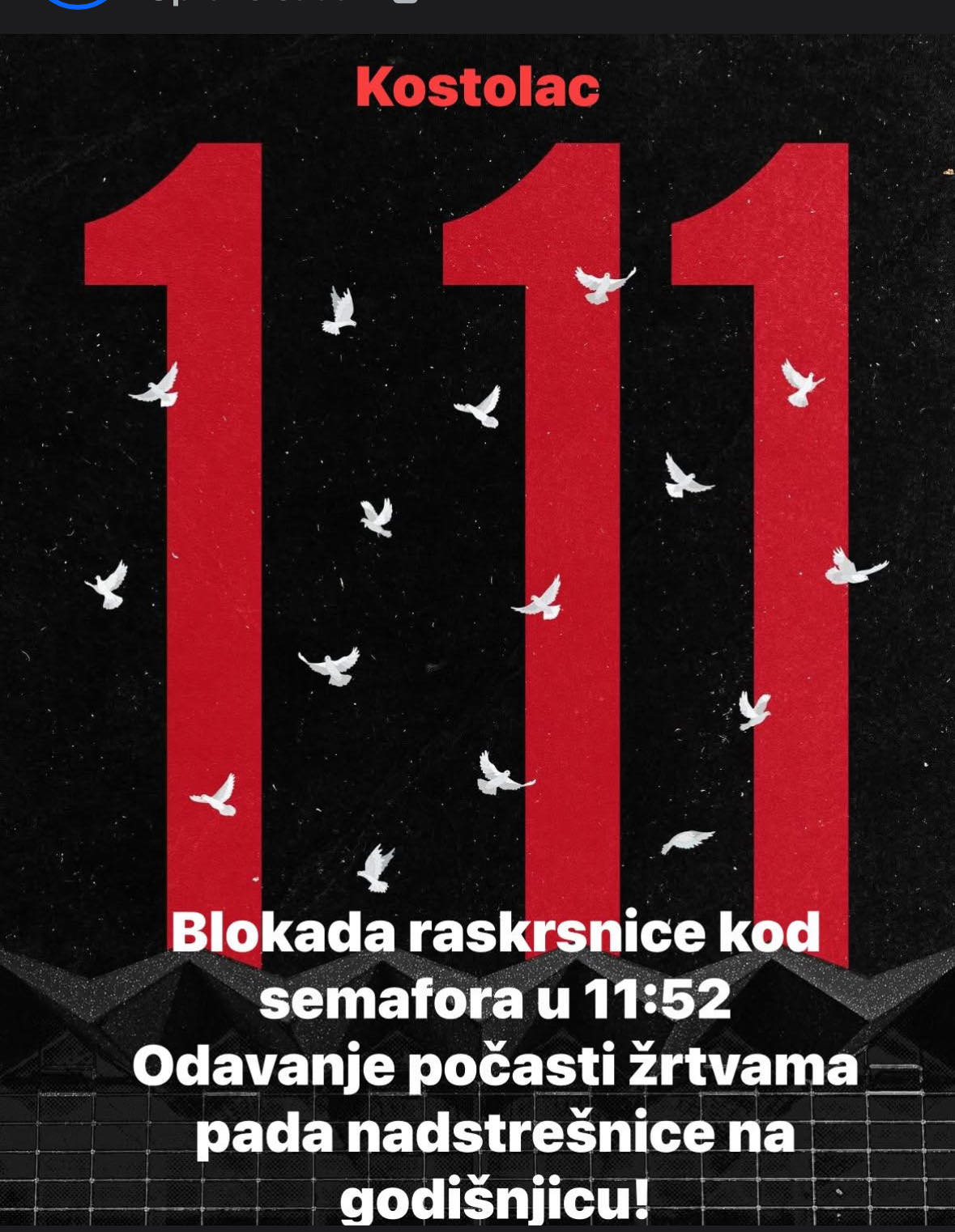 У суботу, 1. новембра, у дану када се навршава тачно годину дана од пада надстрешнице, пошта ће бити одата у 11 сати и 52 минута.
