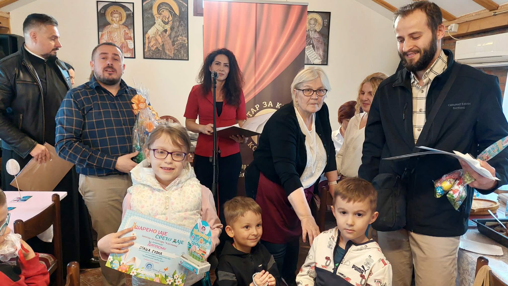Васкршња радост изнова је окупила најмлађе Костолчане. На Дечијој манифестацији „Шарено јаје срећу даје”, у порти цркве Светог Максима Исповедника, 9. априла, надметало се око шездесет малишана у украшавању васкршњих јаја.