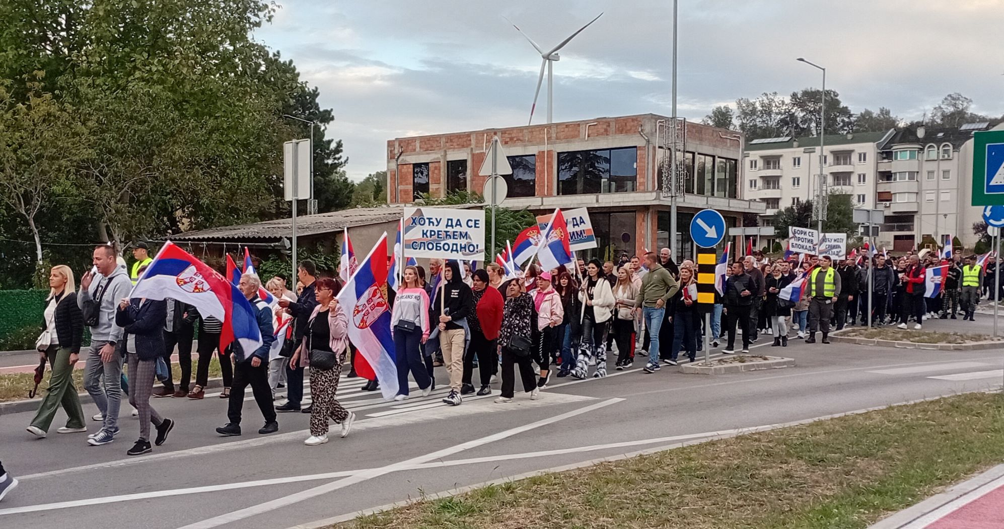 Носили су транспаренте са натписима: “Не дамо Србију”, “Боримо се за мир, рад и напредак”, “Костолац против блокада”, “Хоћу да радим”.