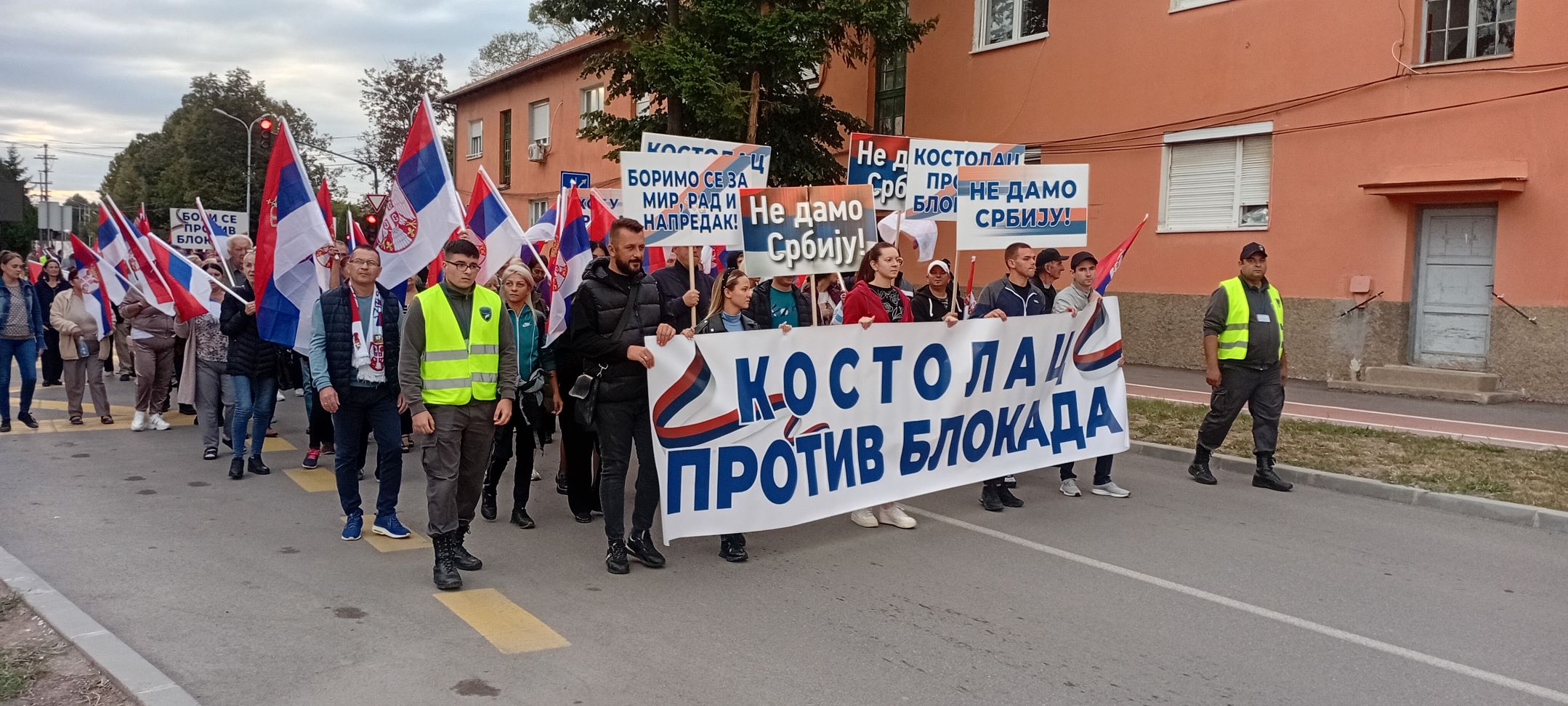 Носили су транспаренте са натписима: “Не дамо Србију”, “Боримо се за мир, рад и напредак”, “Костолац против блокада”, “Хоћу да радим”.