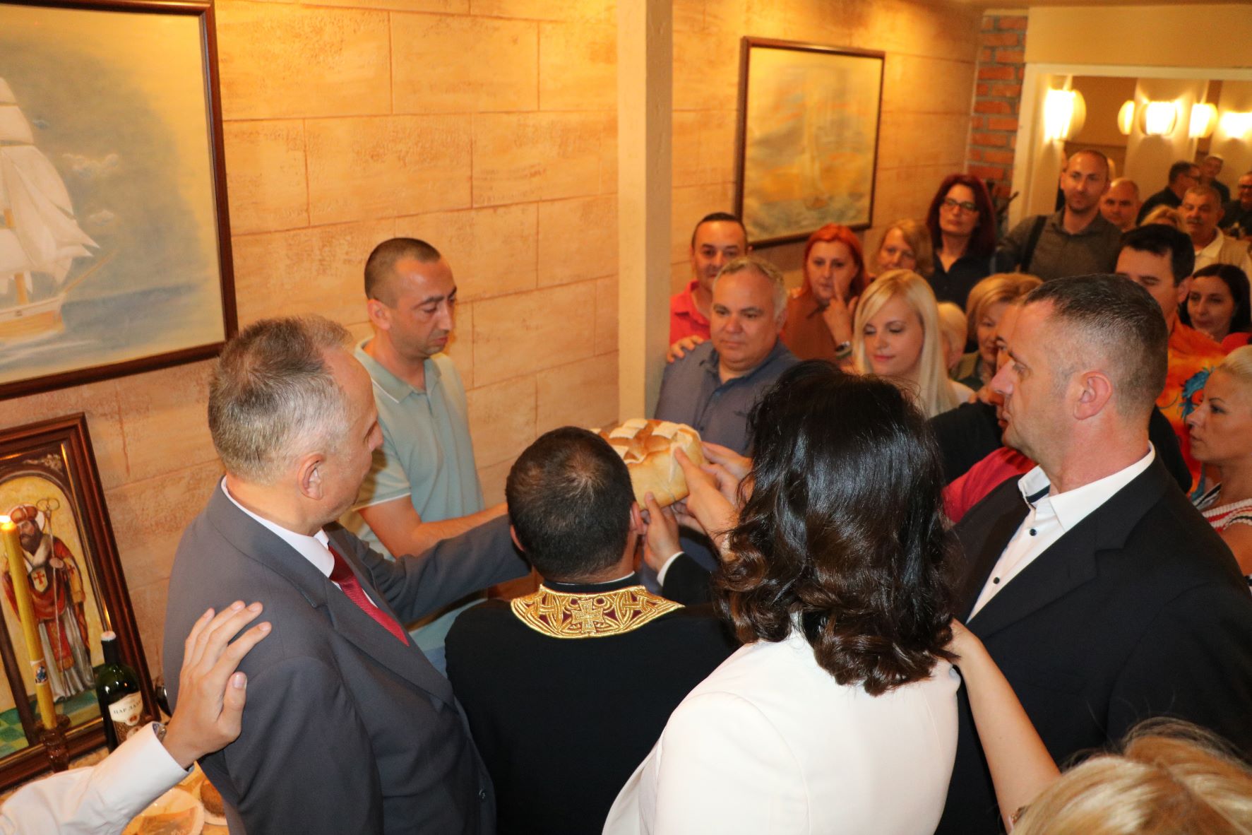 Резање славског колача обавио је свештеник Дејан Лазаров, старешина костолачке цркве Светог Максима Исповедника. Овогодишњи домаћин славе био је Александар Радосављевић, који је колачарску дужност за наредну годину предао Бојани Савић.