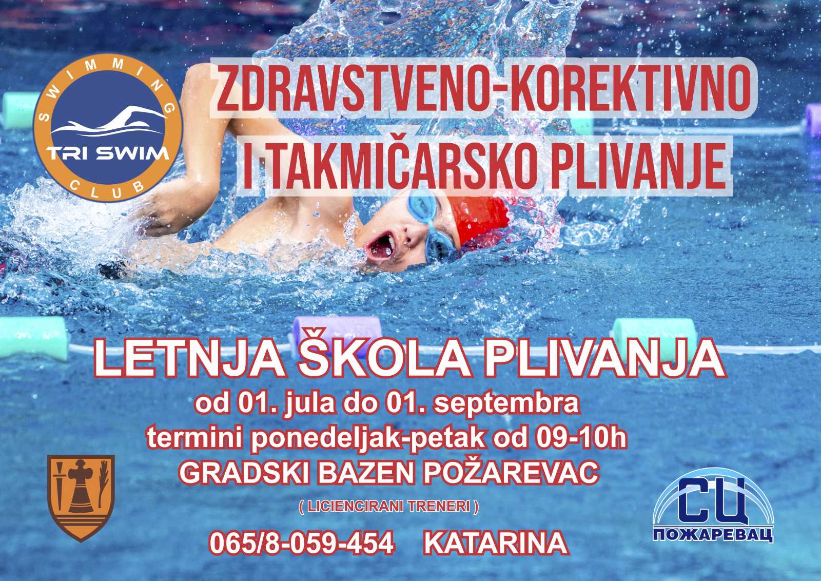 У Пожаревцу, на базену Спортског центра „Пожаревац“, од 1. јула до 1. септембра, биће организована школа здравствено – корективног и такмичарског пливања.