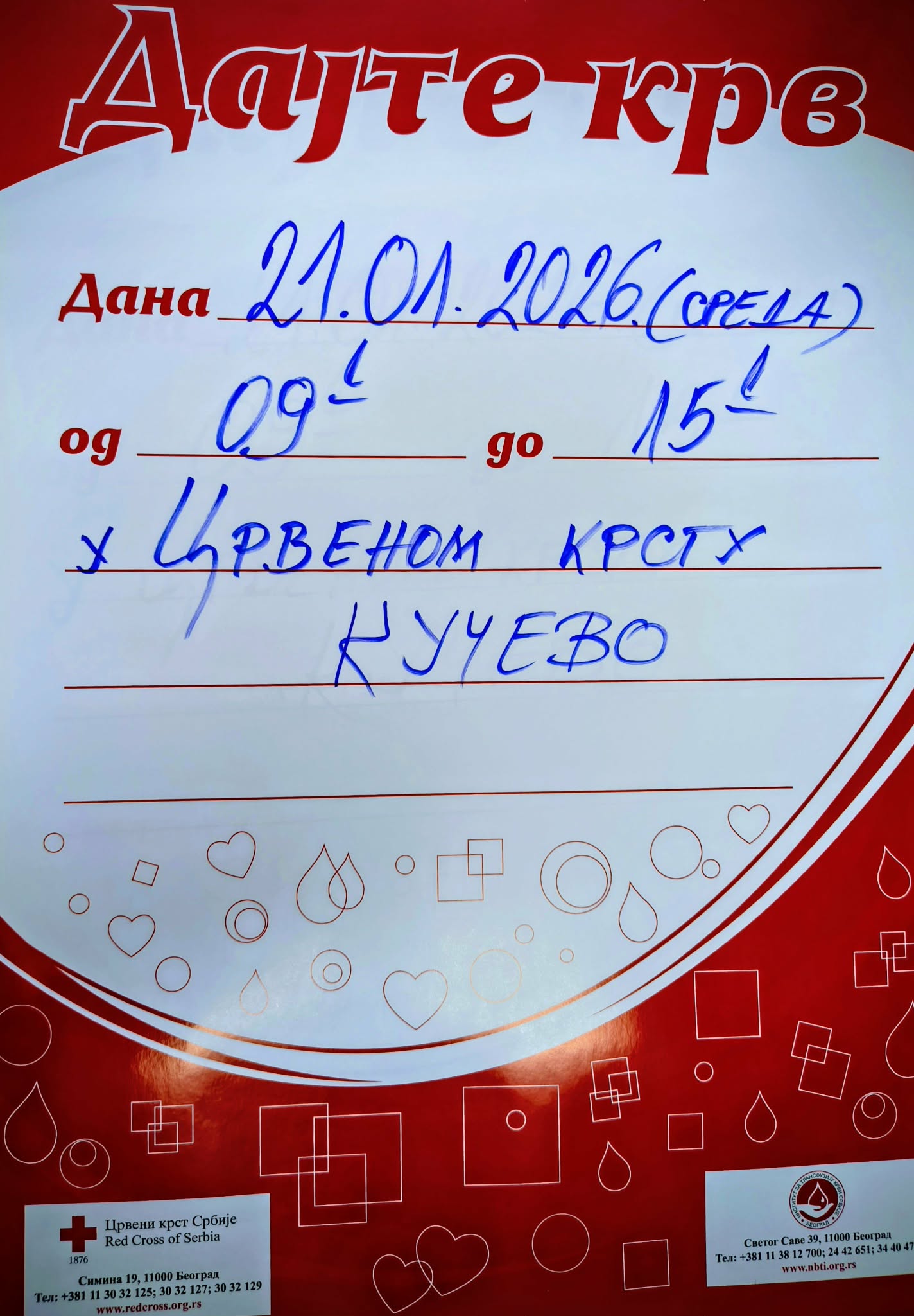 Организатори позивају све грађане који се осећају здраво, немају температуру, прехладу или кашаљ, да се одазову овој хуманитарној акцији.